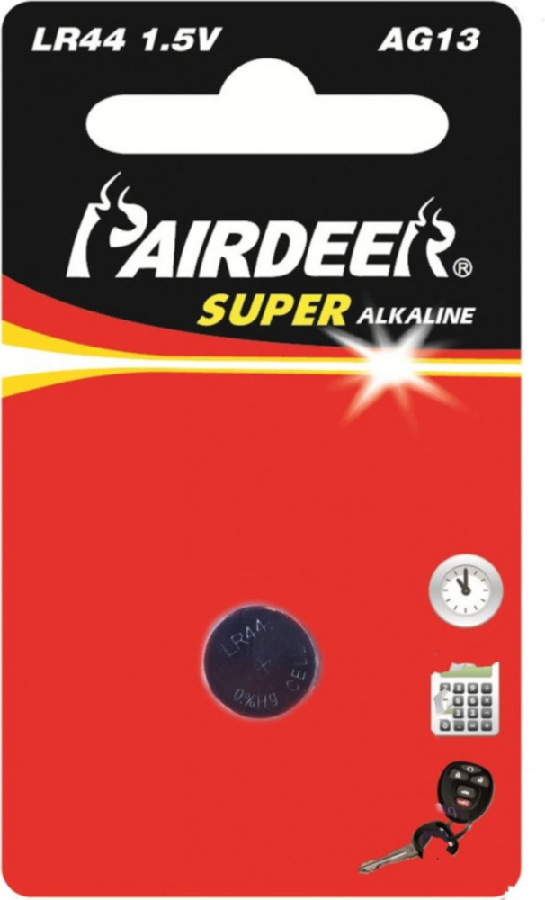Type: AG 13Int. Baugröße: LR44Kapazität: 125 mAHSpannung: 1.5 V