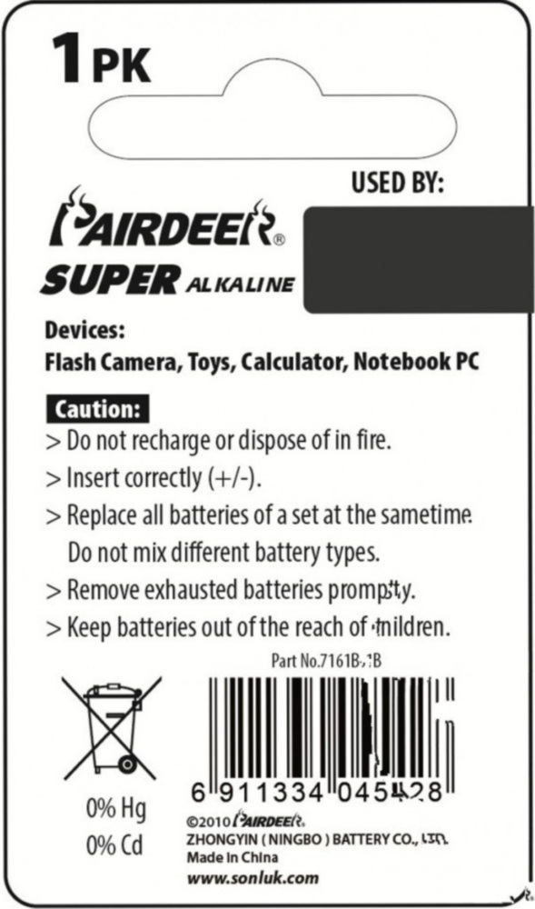 System: Primär Alkali ManganDurchmesser: 11.6 mmHöhe:: 5.4 mmGewicht: 1.8 g