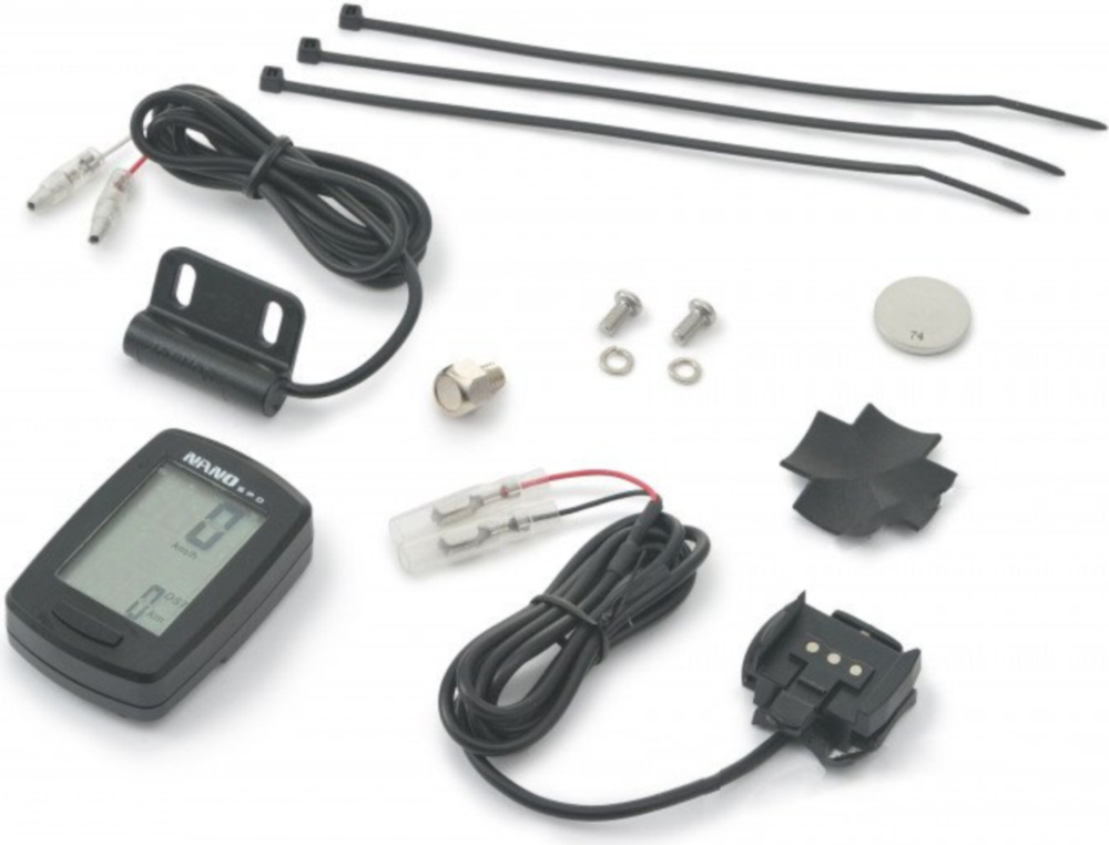 Anzeige: km/h oder mls/h, V-max wird gespeichert, Gesamt km und Trip, Uhrzeit.