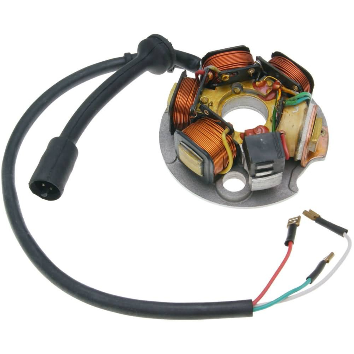 Complete stator for the Vespa PK 50cc to 125cc alternator. A defective stator may be cause of many problems with ignition or wiring. A component that is difficult to check, and often only a complete exchange helps. Low-cost alternative to the original part number 199500.