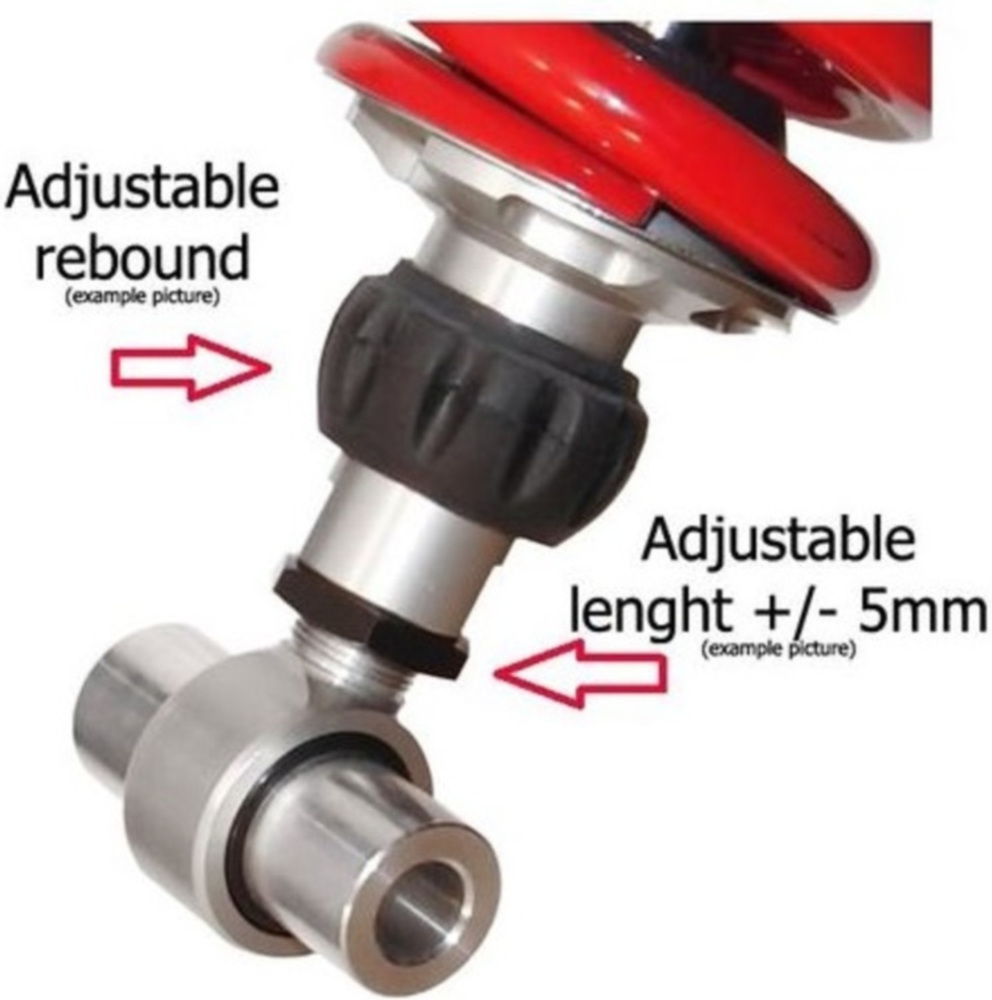 Adjustable length. It helps increase the length of the shock absorber. The two types can be upgraded to 10 mm or adjustable lengths +/- 5 mm.