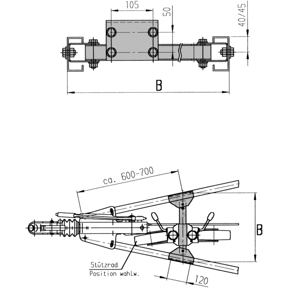 - passend für V-Holme Fabrikat AL-KO- Statische Belastung Stützrad max. 300 kg - Länge B 390/410 mm