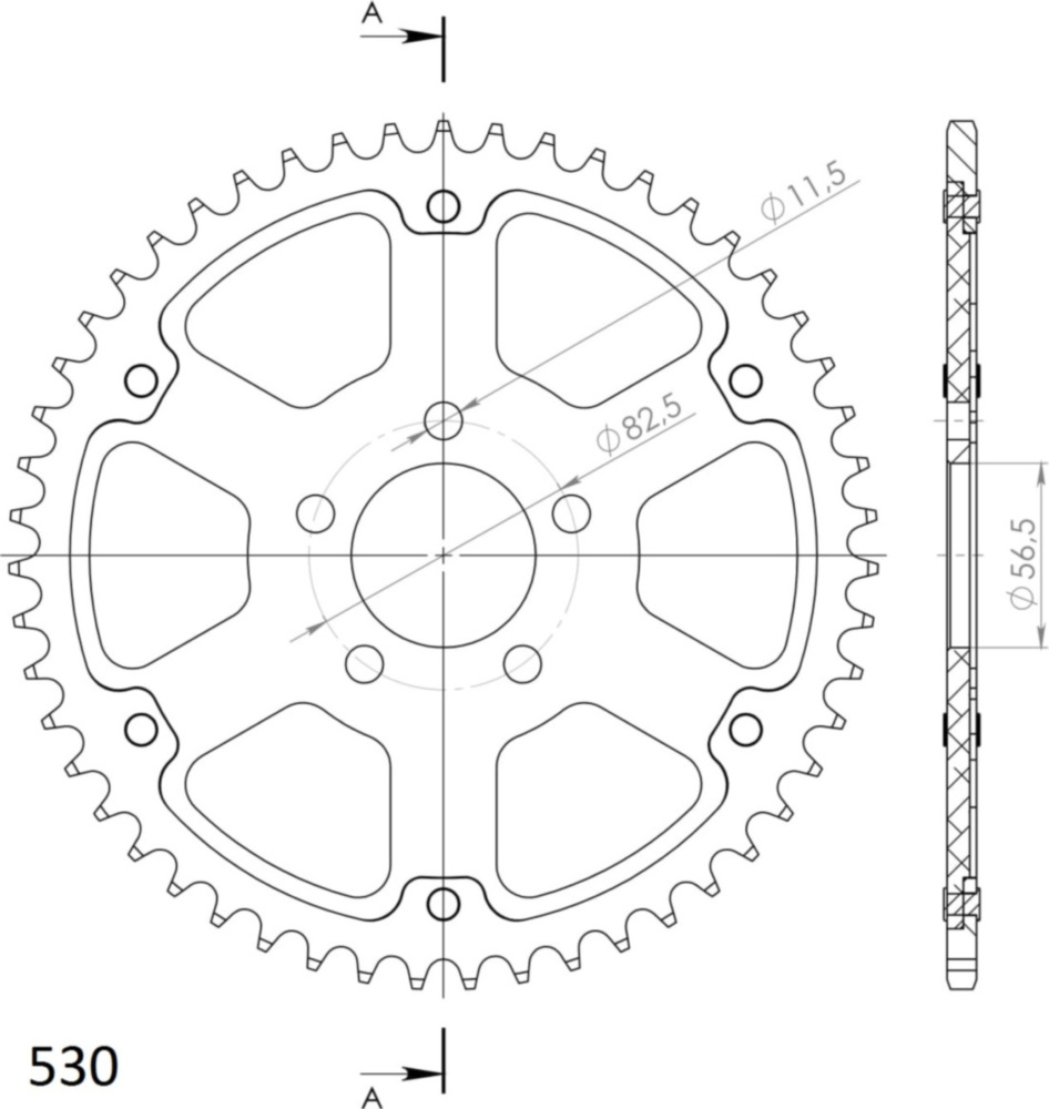 RST-7081:50-BLK|ID 56,5 LK 82,5 5-Loch, RST708150BLK