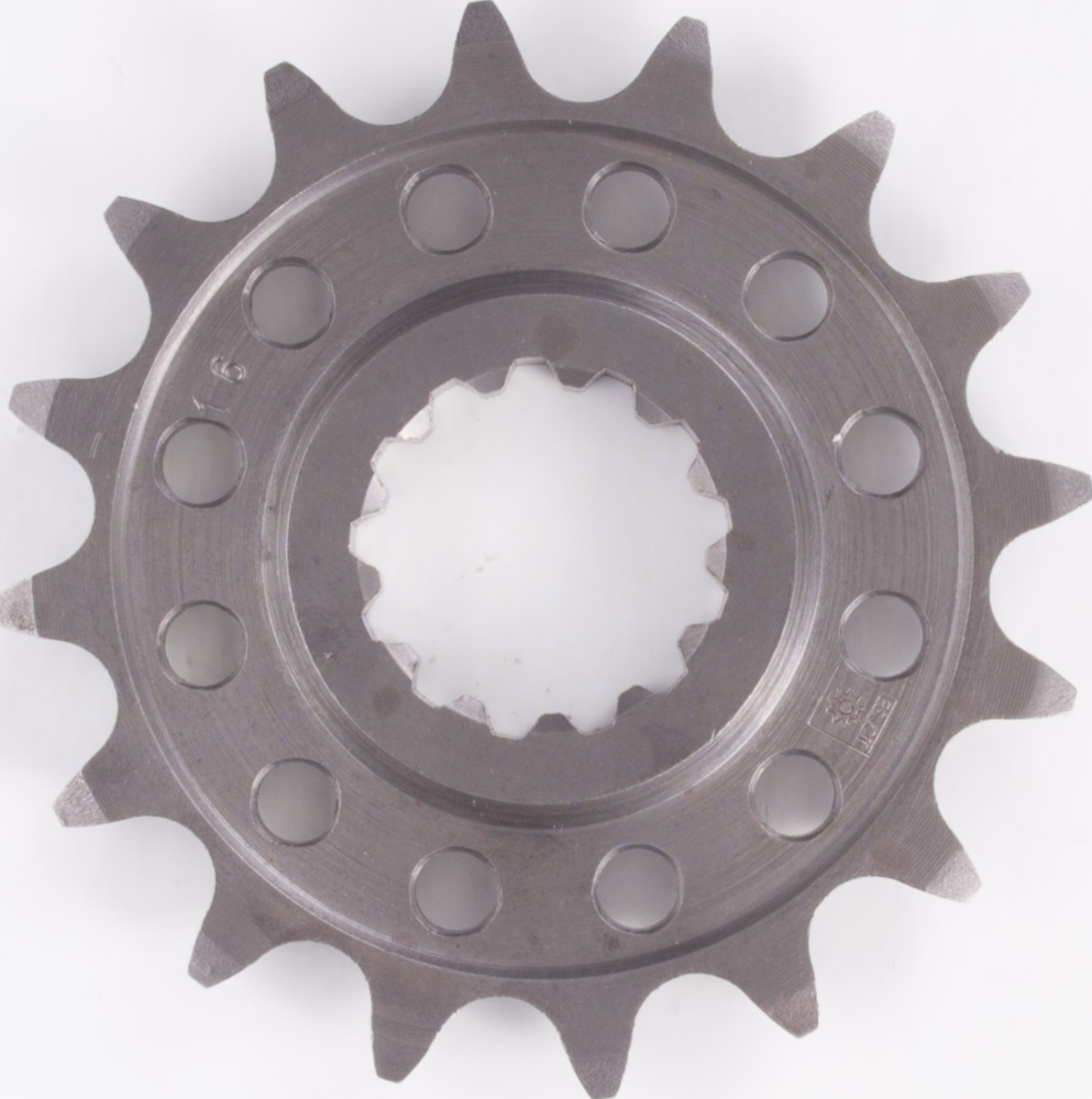 Esjot ist ein deutscher Produzent der Zweiradindustrie, mit dem bundesweit umfangreichstem Sortiment an Kettenrädern und Ritzeln. Für Ritzel wird der Stahl 16 MnCR 5 gemäß OEM Qualität auf CNC Drehautomaten bearbeitet. Die Verzahnung im Diamond-Cut Verfahren sowie eine Einsatzhärtung von 700 HV 40 bei einer Einsatztiefe von 0,4mm entsprechen einem hohem Qualitätsanspruch. Durch moderne Räummaschinen garantiert Esjot ein genaues Passmaß auf der Antriebswelle mit einer Rund- und Planlauftoleranz von unter 0,1mm.