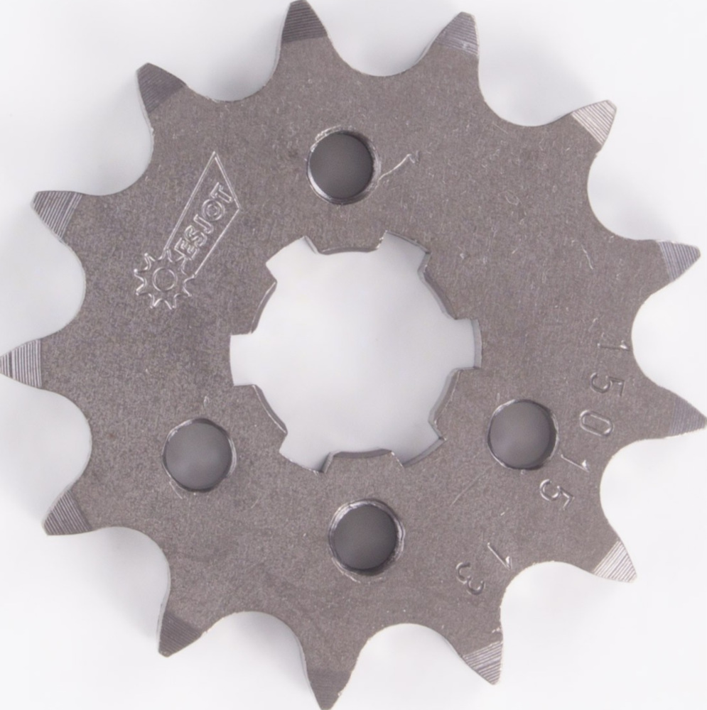 Esjot ist ein deutscher Produzent der Zweiradindustrie, mit dem bundesweit umfangreichstem Sortiment an Kettenrädern und Ritzeln. Für Ritzel wird der Stahl 16 MnCR 5 gemäß OEM Qualität auf CNC Drehautomaten bearbeitet. Die Verzahnung im Diamond-Cut Verfahren sowie eine Einsatzhärtung von 700 HV 40 bei einer Einsatztiefe von 0,4mm entsprechen einem hohem Qualitätsanspruch. Durch moderne Räummaschinen garantiert Esjot ein genaues Passmaß auf der Antriebswelle mit einer Rund- und Planlauftoleranz von unter 0,1mm.