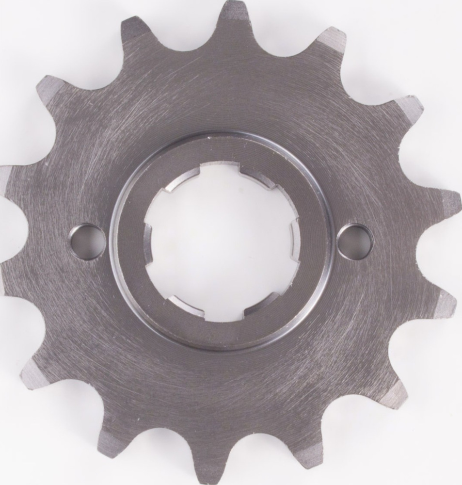 Esjot ist ein deutscher Produzent der Zweiradindustrie, mit dem bundesweit umfangreichstem Sortiment an Kettenrädern und Ritzeln. Für Ritzel wird der Stahl 16 MnCR 5 gemäß OEM Qualität auf CNC Drehautomaten bearbeitet. Die Verzahnung im Diamond-Cut Verfahren sowie eine Einsatzhärtung von 700 HV 40 bei einer Einsatztiefe von 0,4mm entsprechen einem hohem Qualitätsanspruch. Durch moderne Räummaschinen garantiert Esjot ein genaues Passmaß auf der Antriebswelle mit einer Rund- und Planlauftoleranz von unter 0,1mm.
