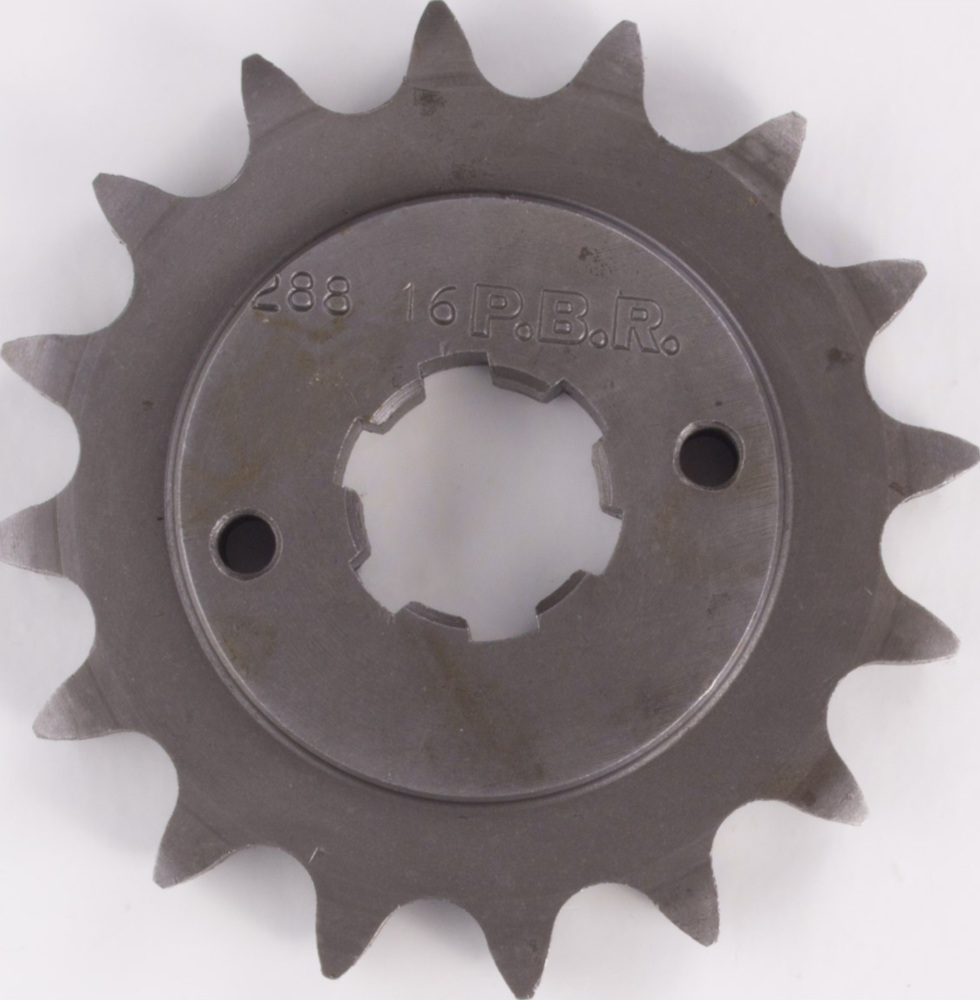 Esjot ist ein deutscher Produzent der Zweiradindustrie, mit dem bundesweit umfangreichstem Sortiment an Kettenrädern und Ritzeln. Für Ritzel wird der Stahl 16 MnCR 5 gemäß OEM Qualität auf CNC Drehautomaten bearbeitet. Die Verzahnung im Diamond-Cut Verfahren sowie eine Einsatzhärtung von 700 HV 40 bei einer Einsatztiefe von 0,4mm entsprechen einem hohem Qualitätsanspruch. Durch moderne Räummaschinen garantiert Esjot ein genaues Passmaß auf der Antriebswelle mit einer Rund- und Planlauftoleranz von unter 0,1mm.