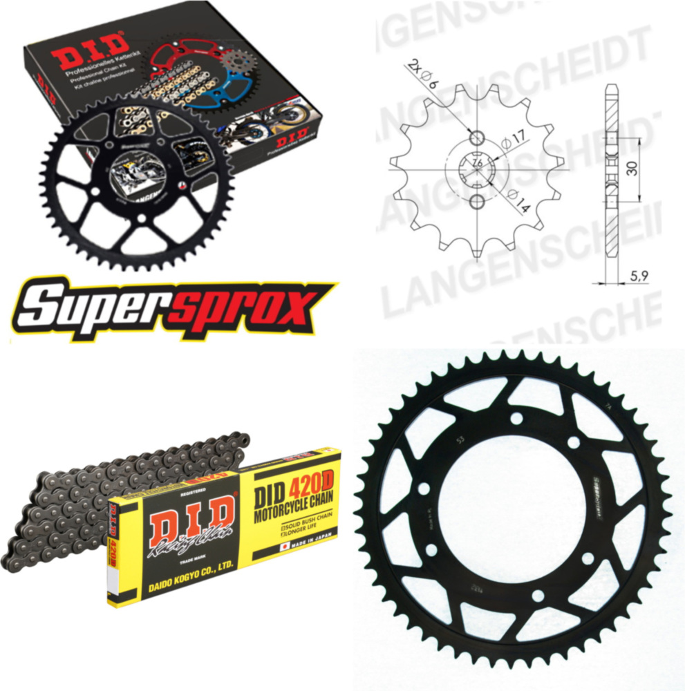 Kettensatz Stahl DERBI Senda R DRD 50 02-05/Senda R DR 13-53-130 DID420D Clip