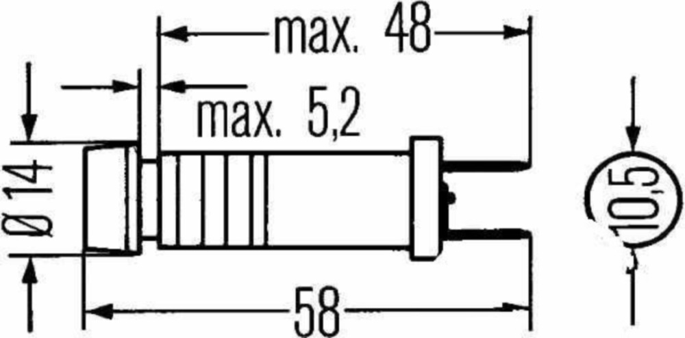 Passende Glühlampe: J, BA 7 s (2W, 12 V / 3W, 24 V)