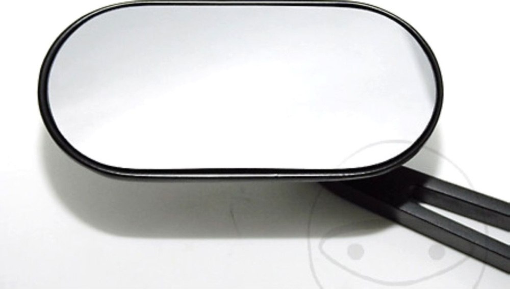 Hochwertig verarbeiteter, schwarzer Lenkerspiegel mit einem ovalen Kopf und einem leicht grau-getöntem Spiegelglas für einen optimalen Blendschutz.