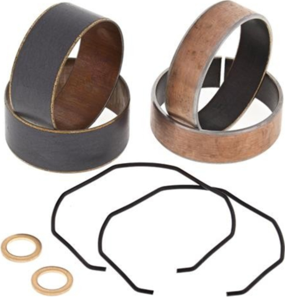 Die Kits enthalten (2) Schiebeführungen (2) Beinbuchsen zusammen mit allen notwendigen Kupferscheiben, O-Ringen und Gabeldichtsprengringen.Die Buchsen sind Prüfstand getestet bei 500.000 Schlägen mit weniger Verschleiß als bei OEM Buchsen.
