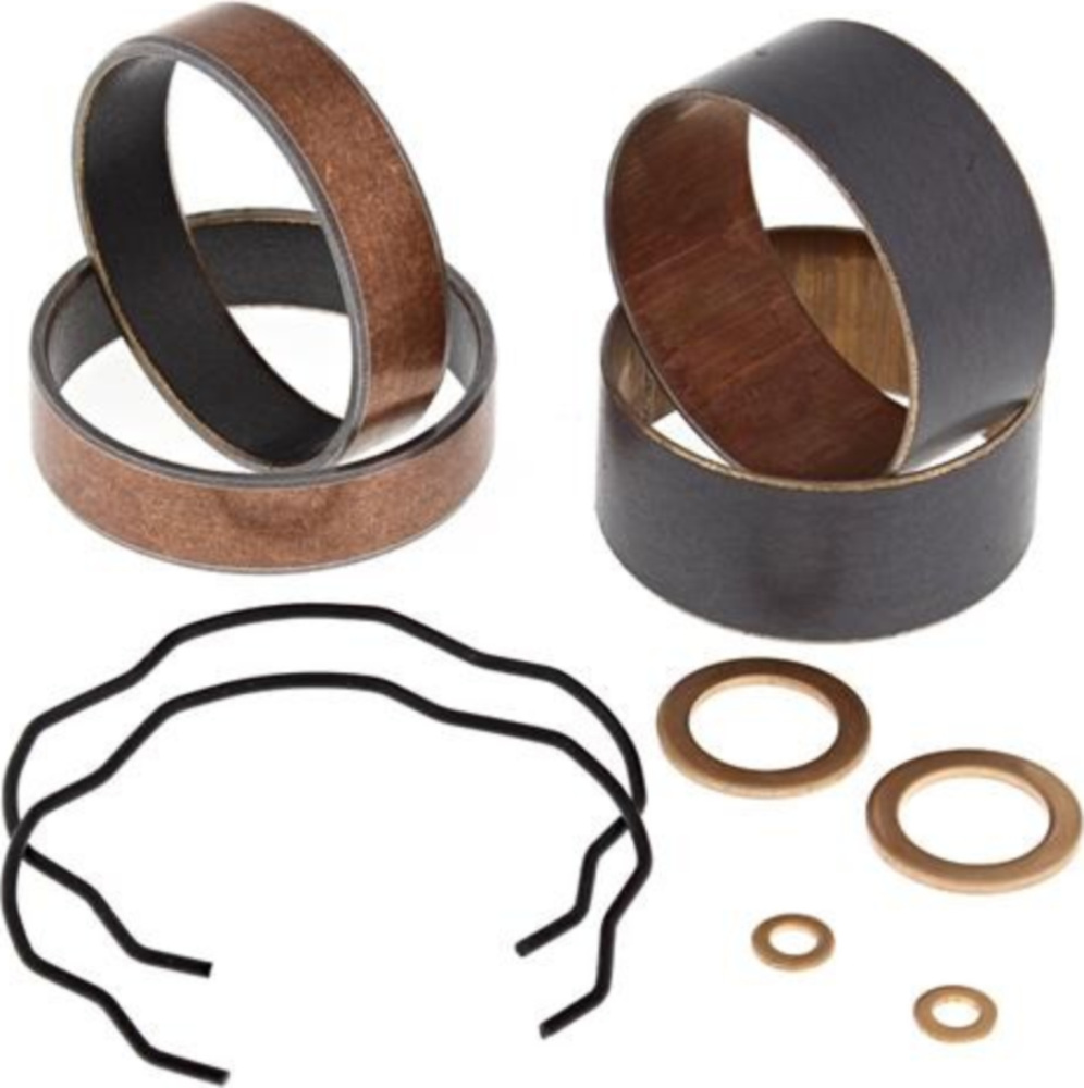 Die Kits enthalten (2) Schiebeführungen (2) Beinbuchsen zusammen mit allen notwendigen Kupferscheiben, O-Ringen und Gabeldichtsprengringen.Die Buchsen sind Prüfstand getestet bei 500.000 Schlägen mit weniger Verschleiß als bei OEM Buchsen.