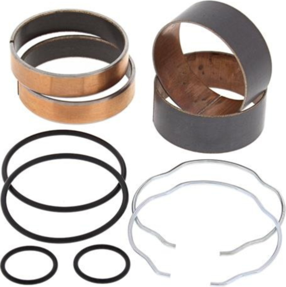 Die Kits enthalten (2) Schiebeführungen (2) Beinbuchsen zusammen mit allen notwendigen Kupferscheiben, O-Ringen und Gabeldichtsprengringen.Die Buchsen sind Prüfstand getestet bei 500.000 Schlägen mit weniger Verschleiß als bei OEM Buchsen.