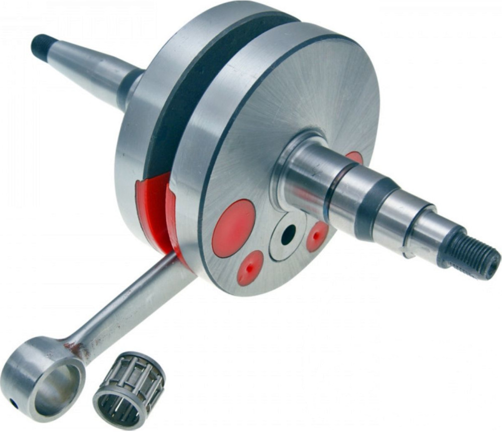Ersatzkurbelwelle Sport passend für Simson S51, S53, S70, S83, Schwalbe, SR50 oder SR80. Die Kurbelwelle kann für getunte Motoren oder als Ersatzkurbelwelle eingesetzt werden. Zu den Besonderheiten zählen das polierte Pleuel sowie die Kunststoffeinsätze für eine etwas stärkere Vorverdichtung bei geringerem Gewicht als bei einer herkömmlichen Vollwangenkurbelwelle.