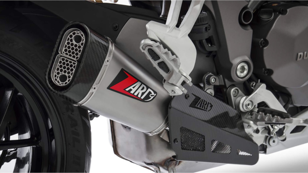 Von Zard gibt es jetzt einen Slip-on Endschalldämpfer Short in Edelstahl. Es werden alle benötigten Anbaumaterialien mitgeliefert. Im Lieferumfang ist auch das Carbon Hitzeschild und die Carbon Endkappe enthalten. Durch die Montage des Endschalldämpfers muss nichts an der Motoreinstellung geändert werden. Der original Endschalldämpfer wiegt 2,6 KG und der ZARD nur 1,3 KG, somit hat man auch noch eine enorme Gewischtsersparnis. Der Endschalldämpfer ist ein echter Eyecatcher an der Ducati Multistrada 1260.