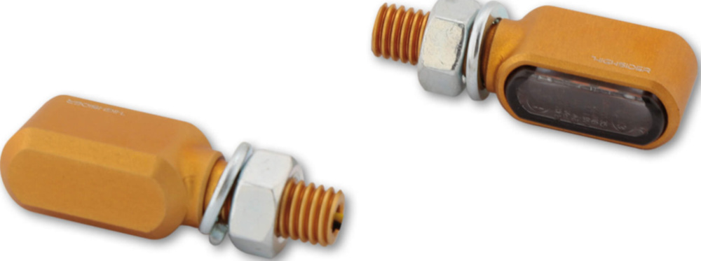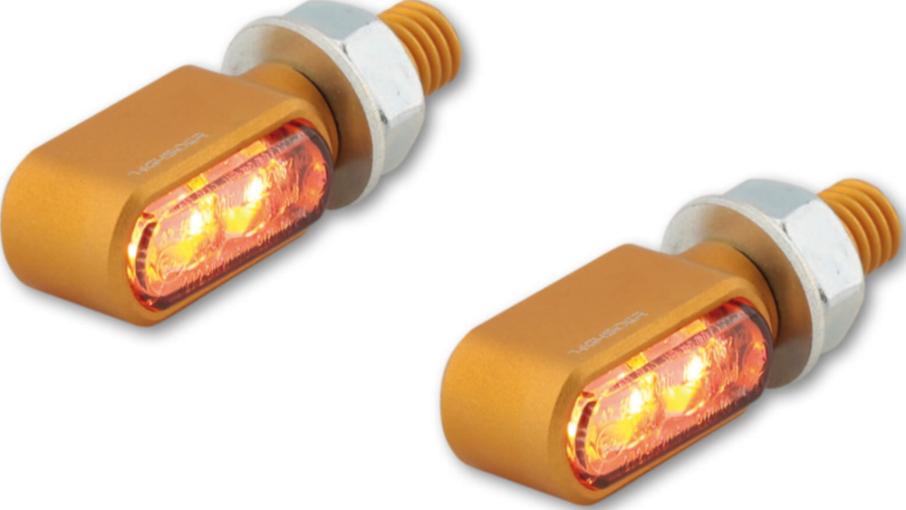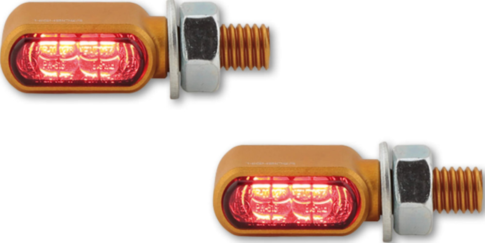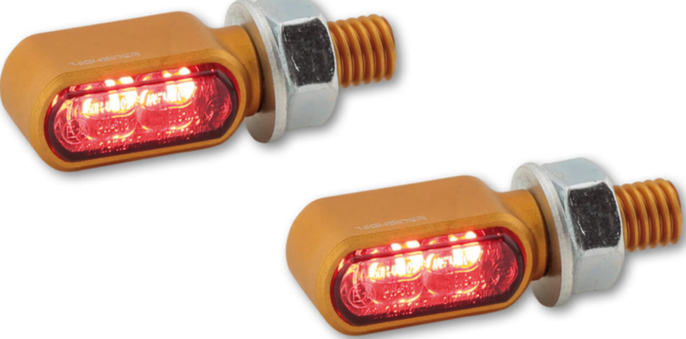 Lampe HIGHSIDER CNC LED Rück-, Bremslicht, Blinker LITTLE BRONX, gold, getönt, E-geprüft, Paar