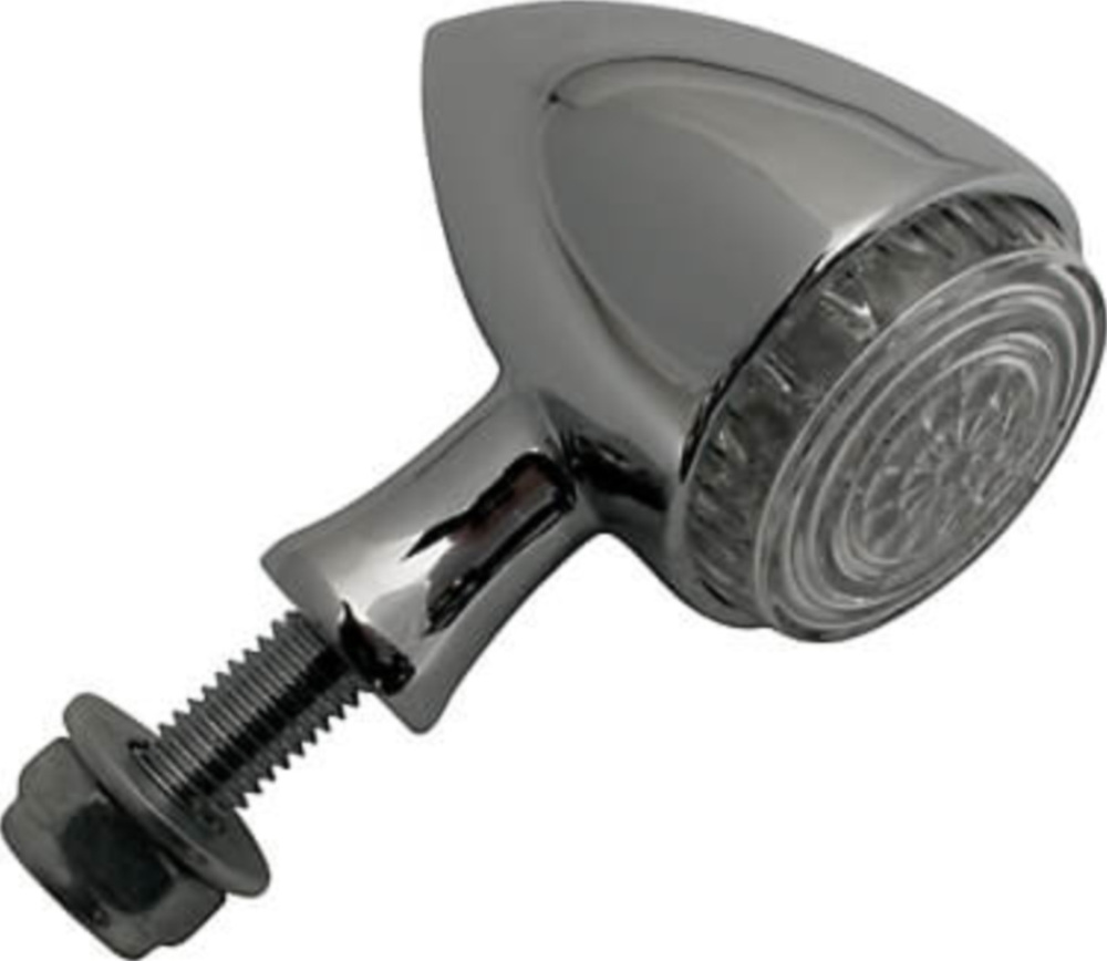 LED Rück-, Bremslicht, Blinker Einheit in einem verchromten Aluminium-Gehäuse mit transparentem Glas, für den Einbau hinten E-geprüft.