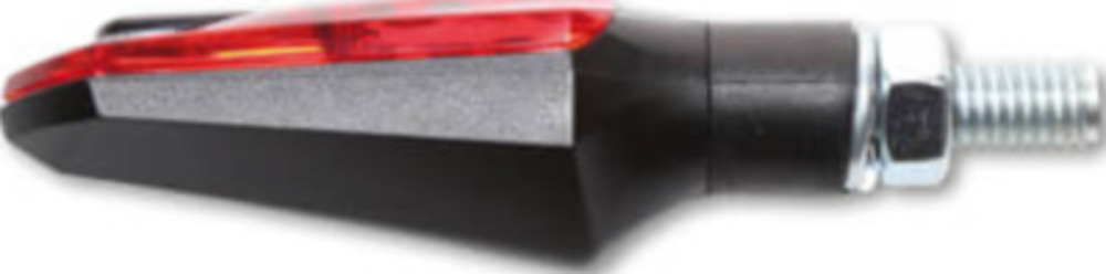 Ein modern designter Blinker mit integriertem Rücklicht. Die neuste Lichttechnik im robusten Kunststoffgehäuse in schwarz, mit Gummistiel und rotem Glas. In das Glas ist ein transparenter Bereich für das Blinklicht eingearbeitet. E-geprüft für hinten.