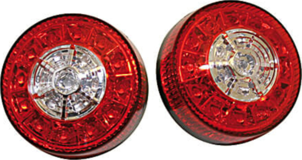 LED Rück-, Bremslicht, Blinker für ATV, etc., schw. Gehäuse, klares Blinkerglas u. rotes Rücklichtglas, Paar, mit PKW Zulassung nach ECE R6 & R7, E-geprüft.