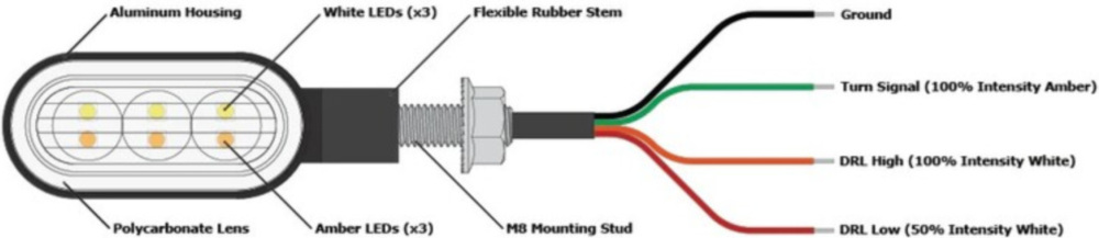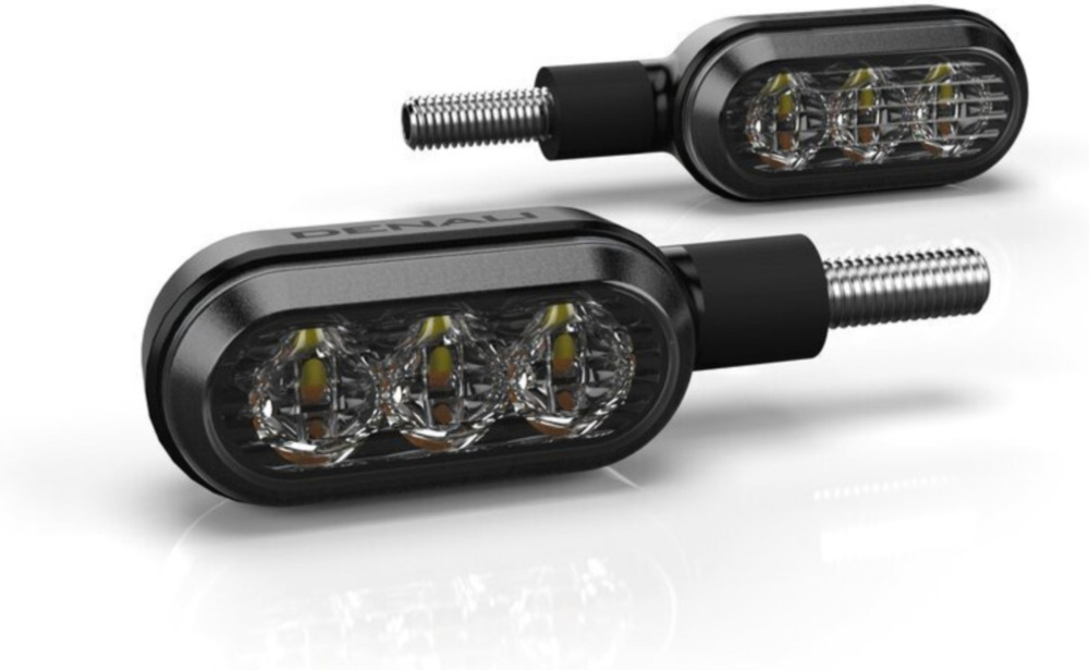 Der T3 ist ein einzigartiger und innovativer Ansatz für den herkömmlichen Blinker, der weiße Sichtbarkeitsbeleuchtung, rote Bremsbeleuchtung und gelbe Blinkerbeleuchtung in einem kompakten Gehäuse vereint. Die hinteren T3-Blinker verfügen über superhelle rote LEDs für die Lauf- und Bremsfunktion, die auch auf gelb umschalten, wenn der Blinker betätigt wird, während die vorderen T3-Blinker über superhelle weiße Lauflichter verfügen, die auf gelb umschalten, wenn der Blinker betätigt wird. Im Gegensatz zu anderen Switchback-Blinkern verfügen die T3-Blinker über zwei getrennte Reihen leistungsstarker einfarbiger LEDs im Gegensatz zu schwächeren zweifarbigen LEDs. Das Ergebnis ist eine schockierend helle Lichtkapsel, die es mit der Intensität von 10-Watt-LED-Fahrlichtern aufnehmen kann.