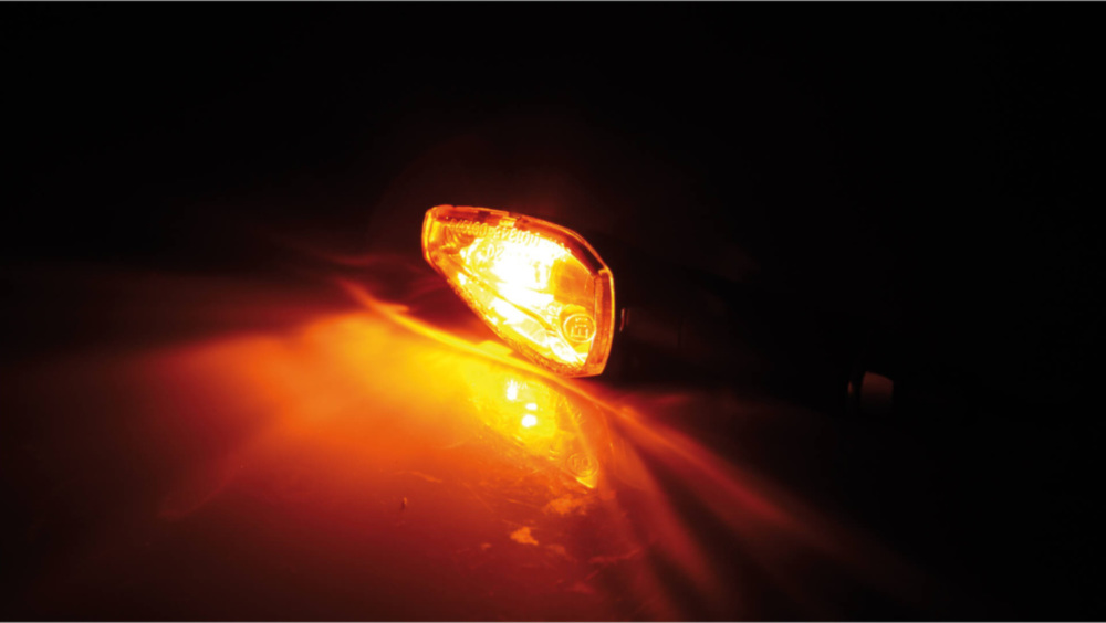 Blinker PEAK, gelbes Glas, langer Stiel, 12V/21W Halogenbirne, E-geprüft, Paar.