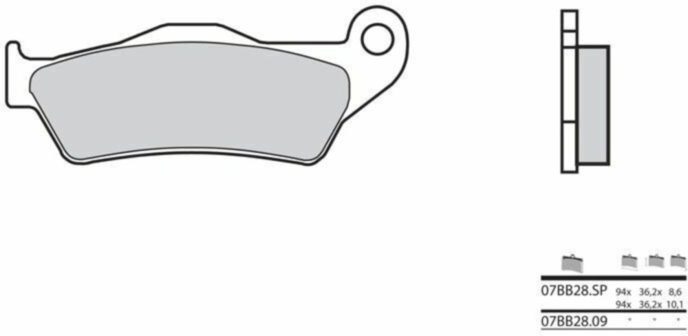 SP: sintermischung für die Hinterradbremse, konstante Bremsleistung unter allen Einsatzbedingungen.