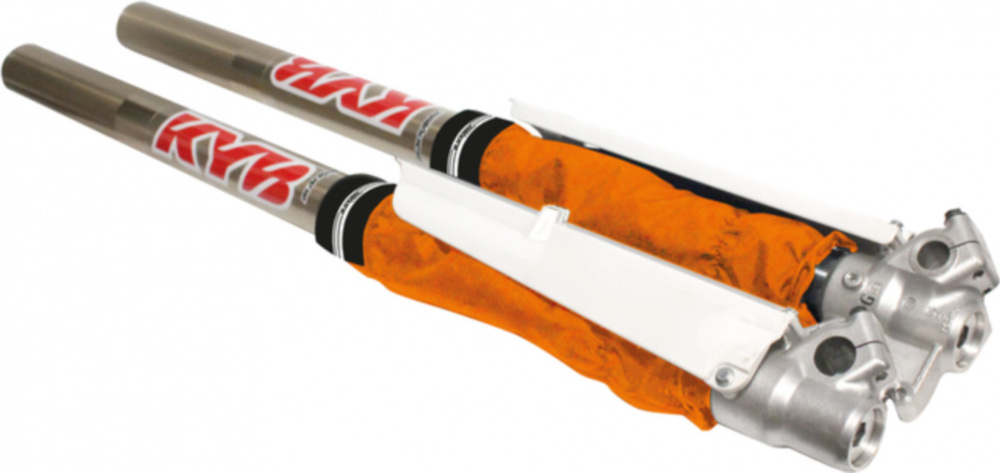 A pair of mud protectors made of technical fabric and designed to protect the dust seals and sealing rings of upside down forks measuring between 45 and 50 mm in diameter, increasing durability and thus prolonging the performance of their shock absorbing elements. The forks must first be removed in order to fit the mud protectors. In the upper part, the FSPs are fixed to the fork tubes by two rubber bands with additional silicon strips inside to strengthen the bond.