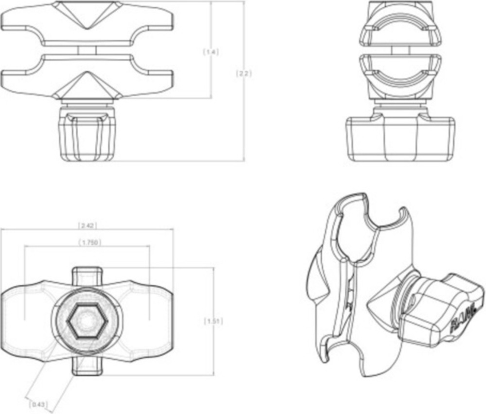 The RAM-B-201U-A consists of a short double socket arm that accommodates 1" B size ball bases, device holders, and adapters. With an overall length 61.5mm, this is the lowest profile RAM double socket arm size. The easy to adjust knob allows for near-infinite adjustability for your connected device.