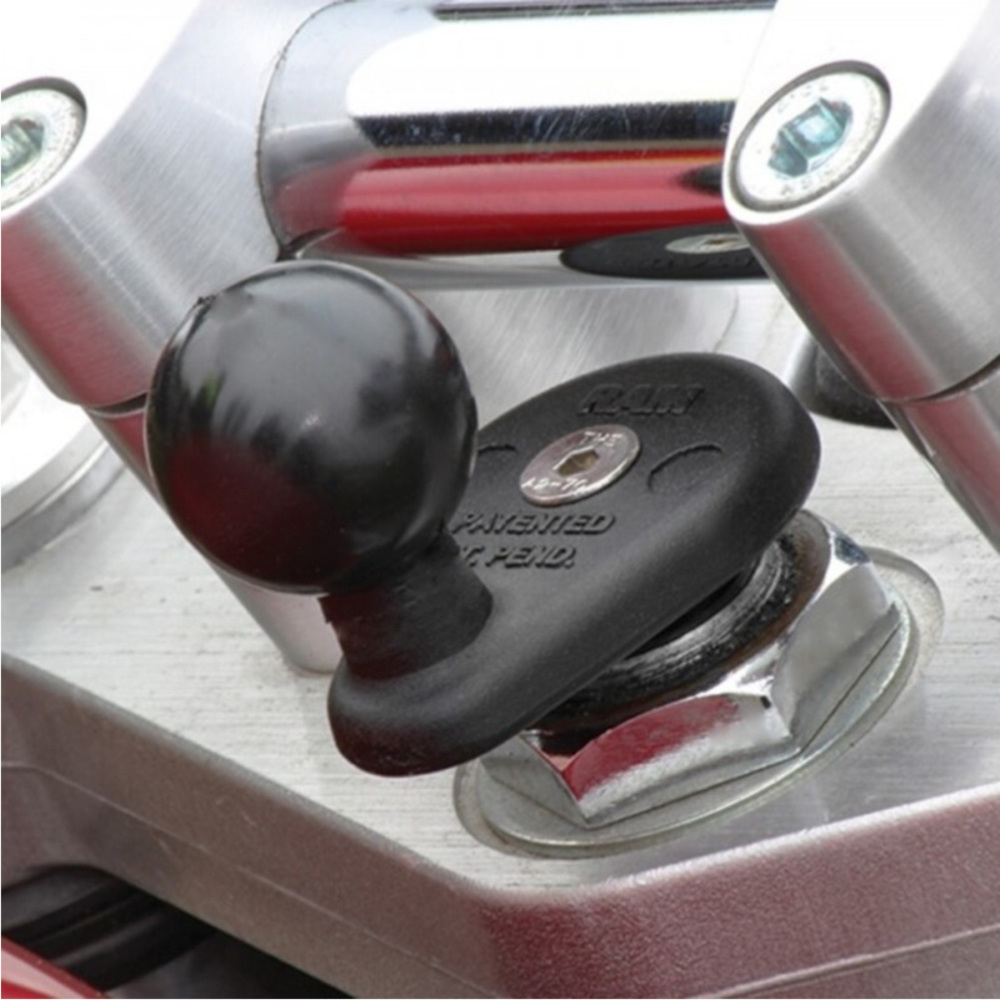 The RAM motorcycle fork stem base is one of the cleanest and most popular solutions for mounting your favorite device on the center of your bike. Featuring a B size 1" rubber ball, this part is designed to fit into the cylindrical bore wall of fork stems and will work with stems that measure 12mm to 38mm in diameter.
