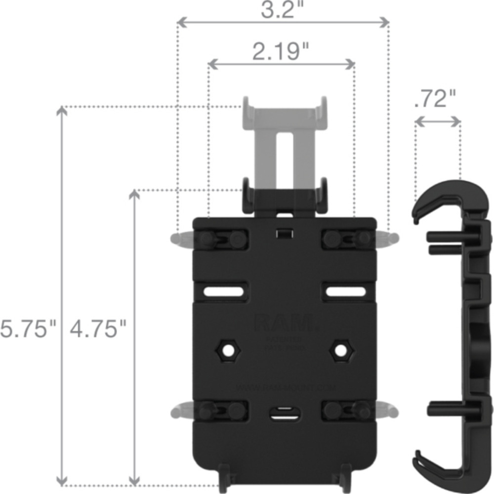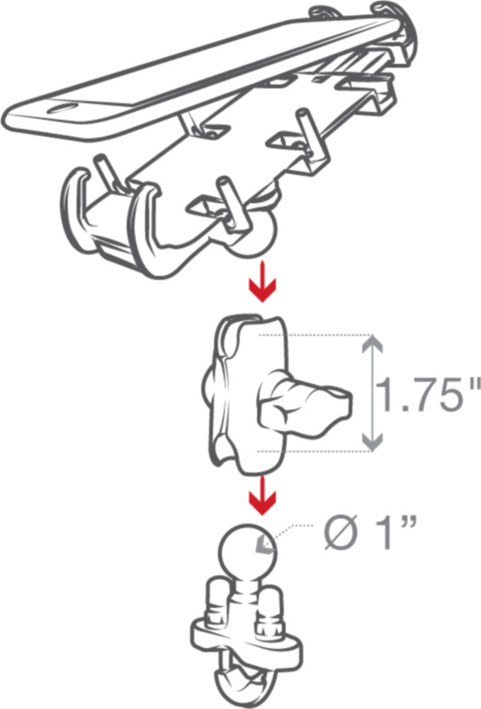 This version of the spring-loaded RAM® Quick-Grip™ holder provides a secure fit for a variety of regular size phones and other devices. The adjustable side keepers ensure that devices like GPS units and Bluetooth speakers within the listed compatible dimensions will also fit in the holder. Included is a short RAM® double socket arm and zinc-coated handlebar U-Bolt base that accommodates rails from .5” to 1.25” in diameter.