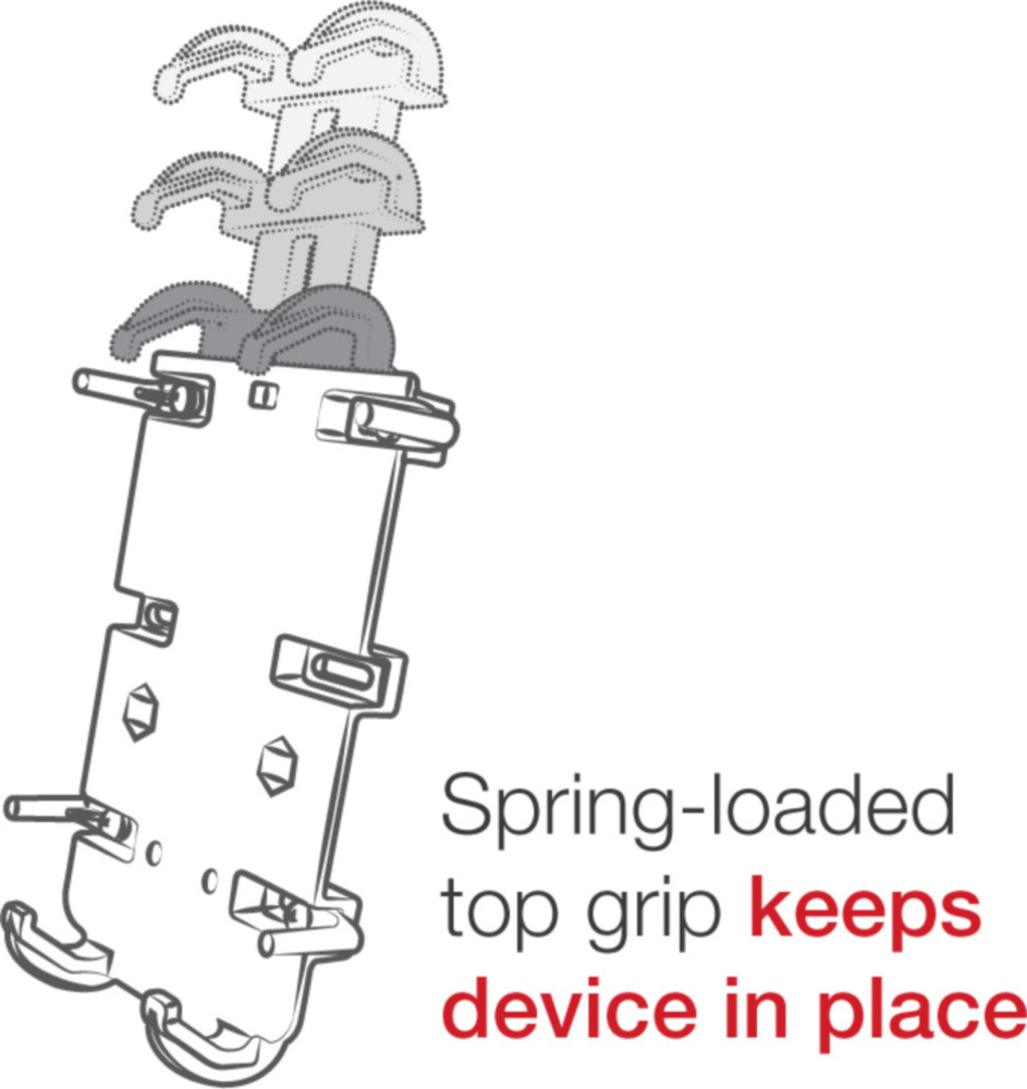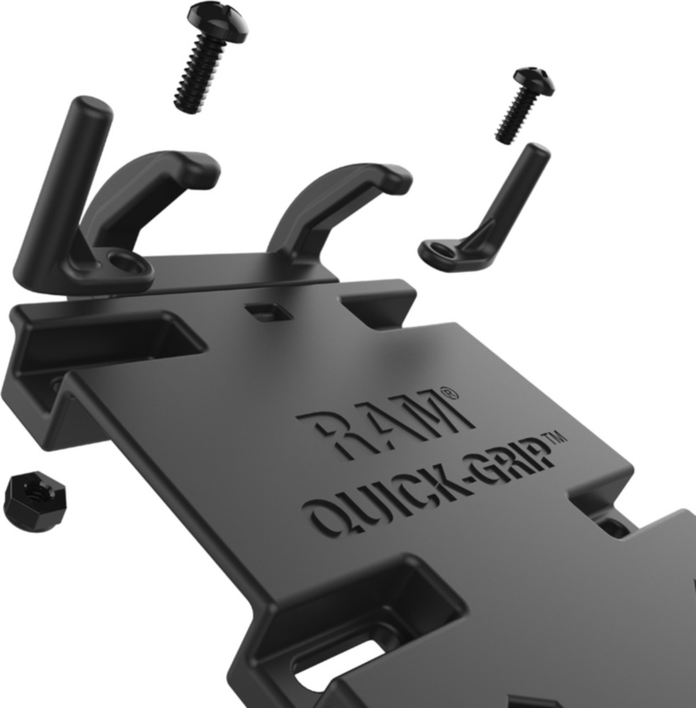 The RAM Quick-Grip™ device mount is capable of holding a broad range of electronic devices. The spring loaded mechanism and the adjustable side keepers allow for a secure grip on your device. Whether it is a cell, GPS, blue tooth speaker or anything that will fit in the dimensions of the cradle, your electronics will be secure.