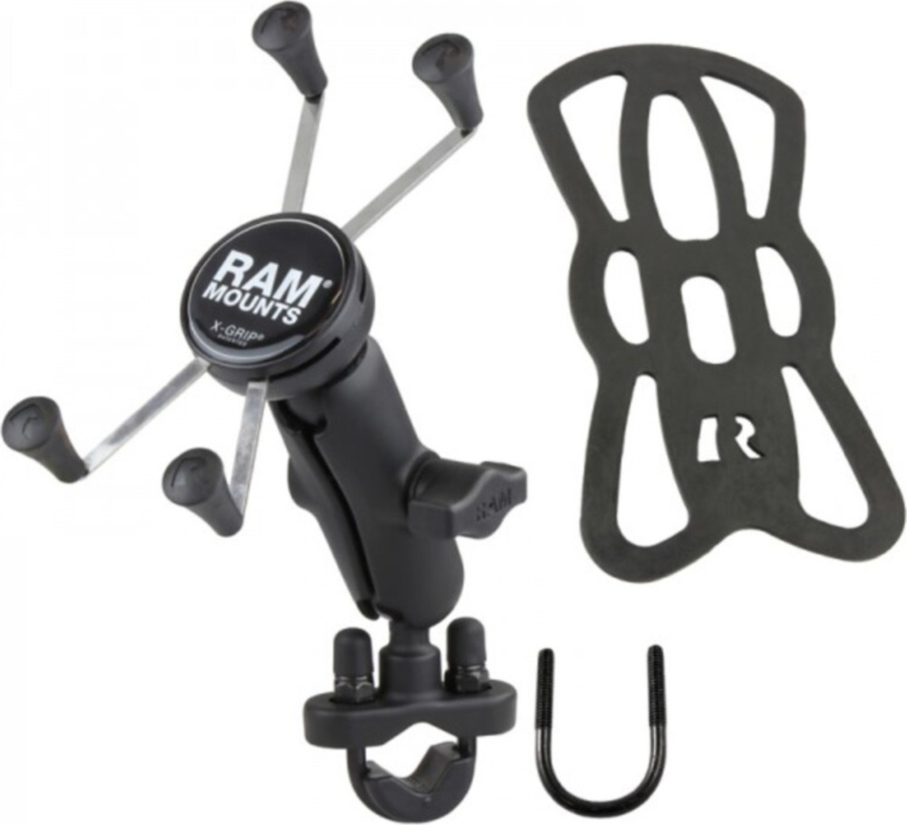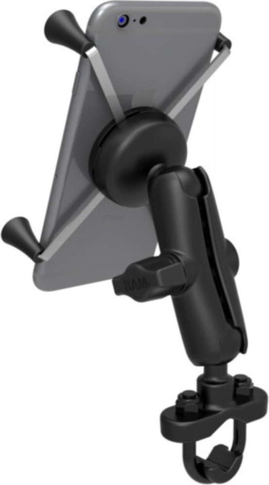 Ideal for handlebars, the RAM-B-149Z-UN10U consists of a zinc-coated U-bolt base, medium length double socket arm, and the popular spring-loaded RAM X-Grip® large phone holder.