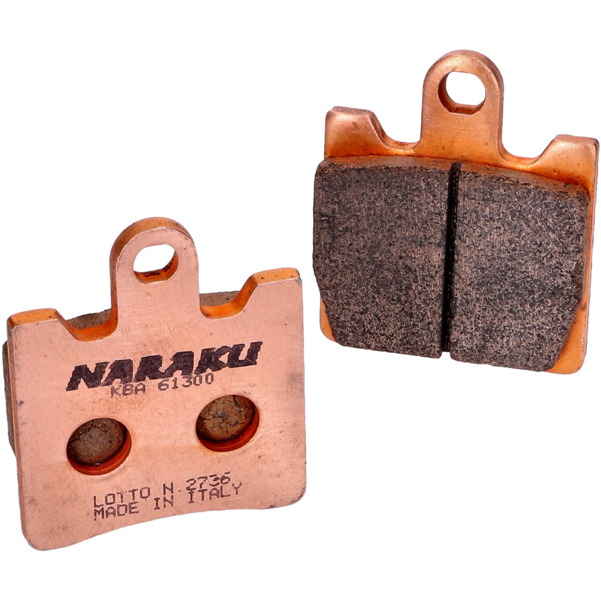 Naraku Sintermetall Bremsbeläge mit KBA-Freigabe für Roller & Moped. Hervorragende Bremswerte, exakte Dosierbarkeit, sehr gute Nassbremseigenschaften, niedriger Verschleiß und minimales Fading bei hohen Bremstemperaturen sind die Haupteigenschaften von diesem hochwertigen Bremsbelag.