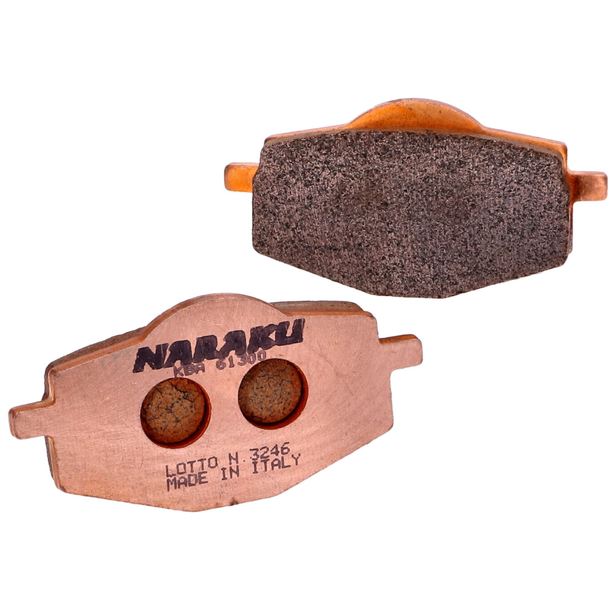 Naraku Sintermetall Bremsbeläge mit KBA-Freigabe für Roller & Moped. Hervorragende Bremswerte, exakte Dosierbarkeit, sehr gute Nassbremseigenschaften, niedriger Verschleiß und minimales Fading bei hohen Bremstemperaturen sind die Haupteigenschaften von diesem hochwertigen Bremsbelag.