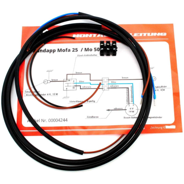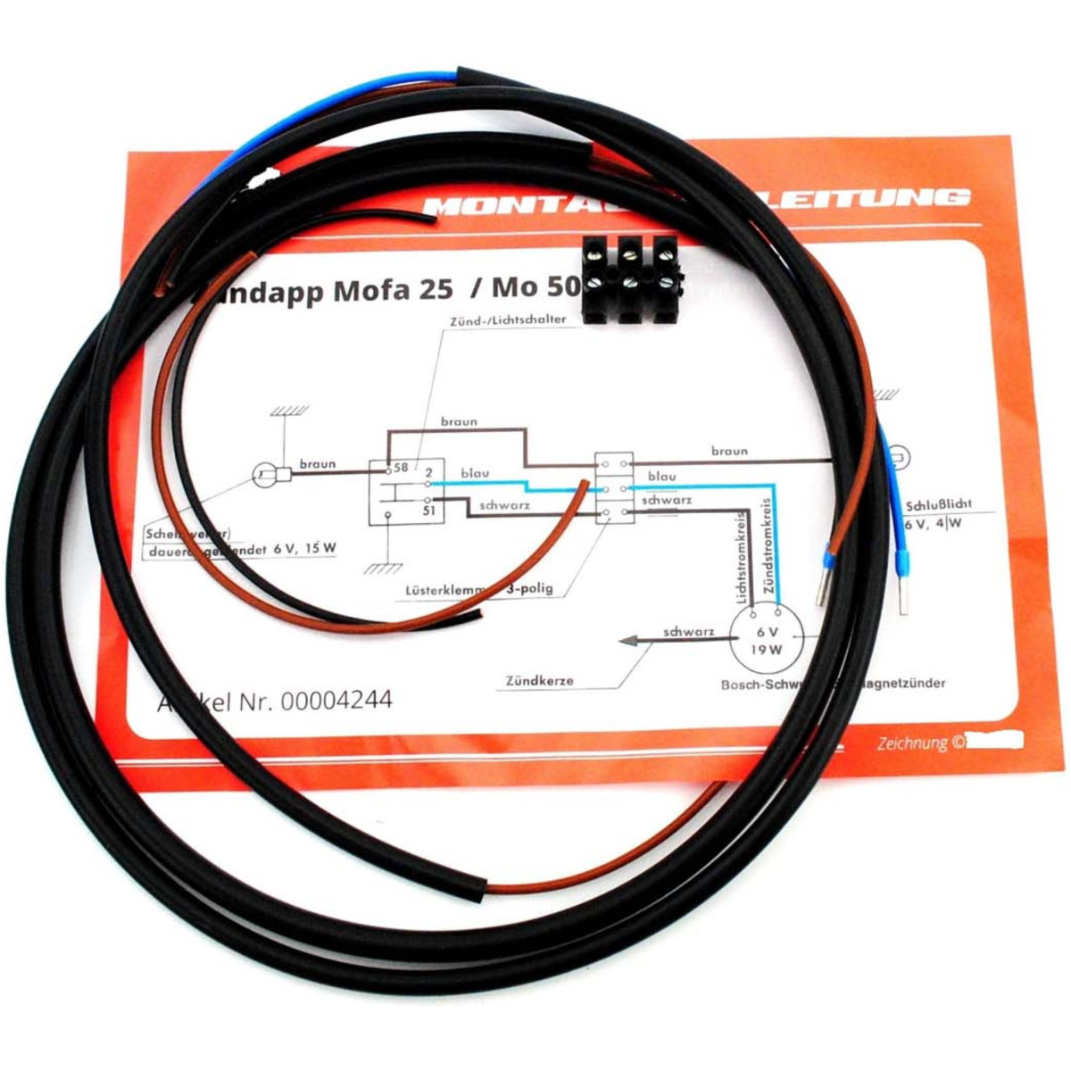 Goebel Kabelbaum, Top Qualität, hergestellt in Deutschland, passend für Zündapp Bergsteiger M 25, M 50 Mofa Moped. Inkl. Einbau/Schaltplan für einfache Montage. Neu vom dt. Spezialisten für Zündung und Licht.