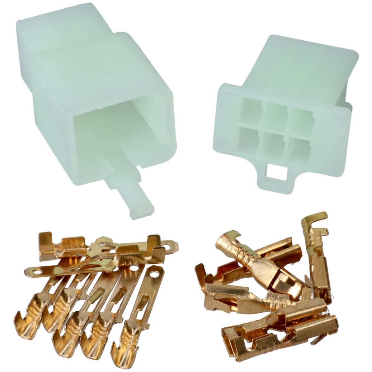 Kabelstecker / Kabelschuh Montagesatz für Reparaturen am Kabelbaum. Der Satz besteht aus 6-fach Stecker männlich und weiblich inkl. Kabelschuhe. Breite: 2,3mm