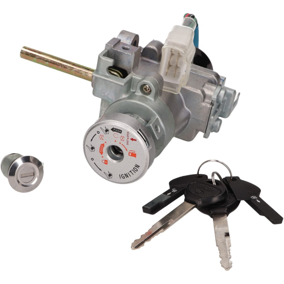 Kompletter Schloßsatz für Kymco X-Citing 250-500ccm Maxiroller. Schlüssel verloren, abgebrochen oder Zündschloß bzw. Sitzbankschloß defekt? Es gibt viele Gründe, welche für einen neuen Schloßsatz sprechen. Leider sind die Originalteile meist sehr teuer und nur das defekte Einzelschloß auszutauschen führt meist zu vielen verschiedenen Schlüsseln.Unsere Schloßsätze umfassen alle am Fahrzeug befindlichen Schlösser in einem Schließsystem mit 2 neuen Schlüsseln. Die Schloßsätze können in der Regel ohne Anpassungsarbeiten Eins zu Eins ausgetauscht werden.Lieferumfang wie abgebildet. Herstellerbedingte Änderungen vorbehalten.