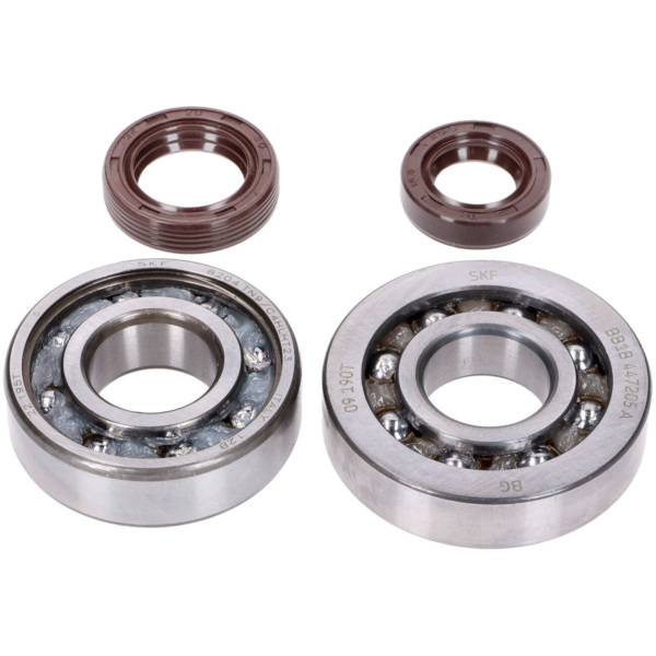 Ein Satz hochwertige Naraku SKF-Kurbelwellenlager inkl. Premium FKM-Wellendichtringe passend für Peugeot Euro-2-Modelle mit stehendem Motor ab Baujahr 2004 wie Peugeot Vivacity 50, TKR 50 und Speedfight 50.