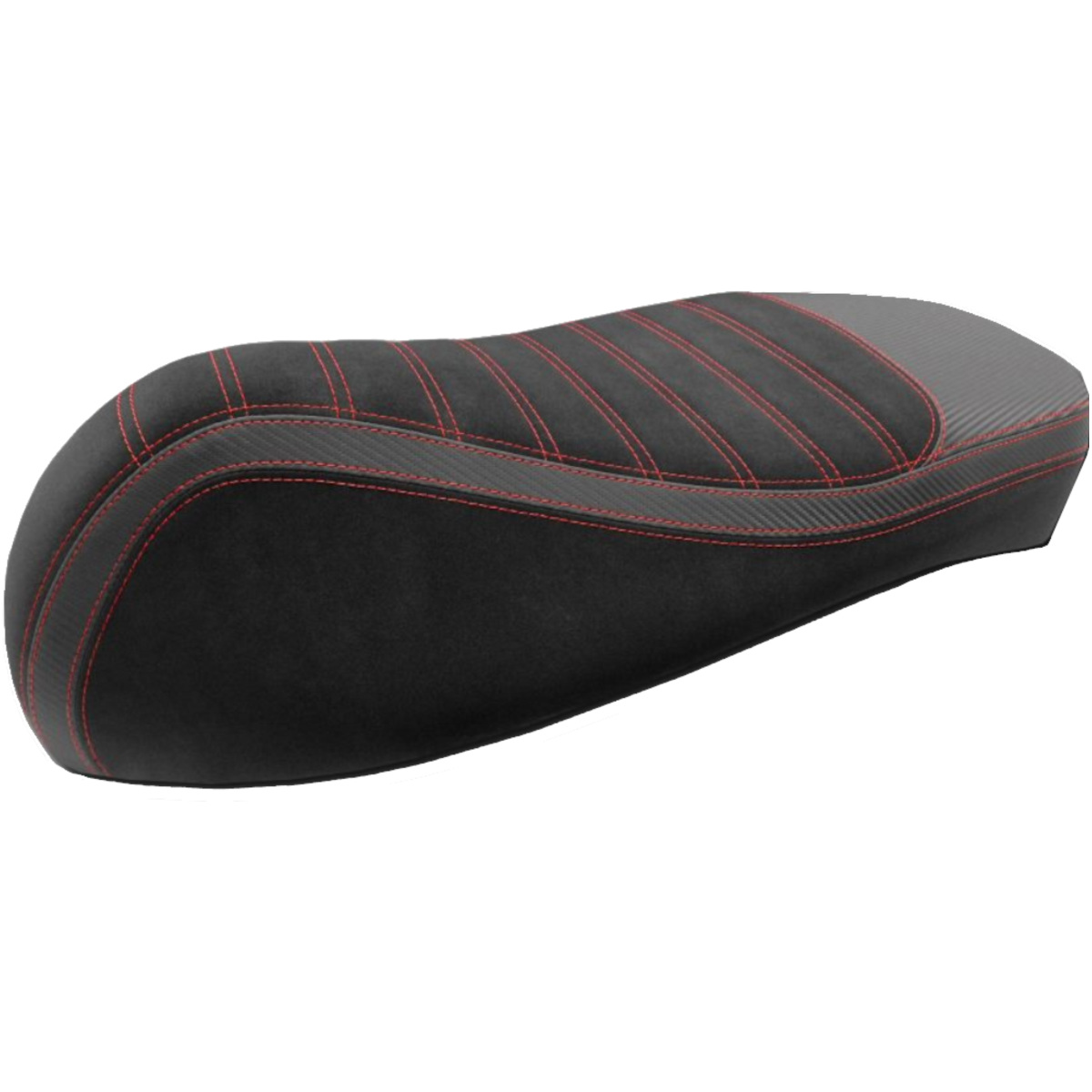 Sehr hochwertiger Sitzbezug aus wasserdichtem Alcantara und verstärktem Kunststoffgewebe in Kohlefaseroptik. Alle Nähte sind wie bei hochwertiger Outdoor-Bekleidung von innen verklebt. Passend für Piaggio Vespa GTS 125, 250 und 300 ab Baujahr 2009.