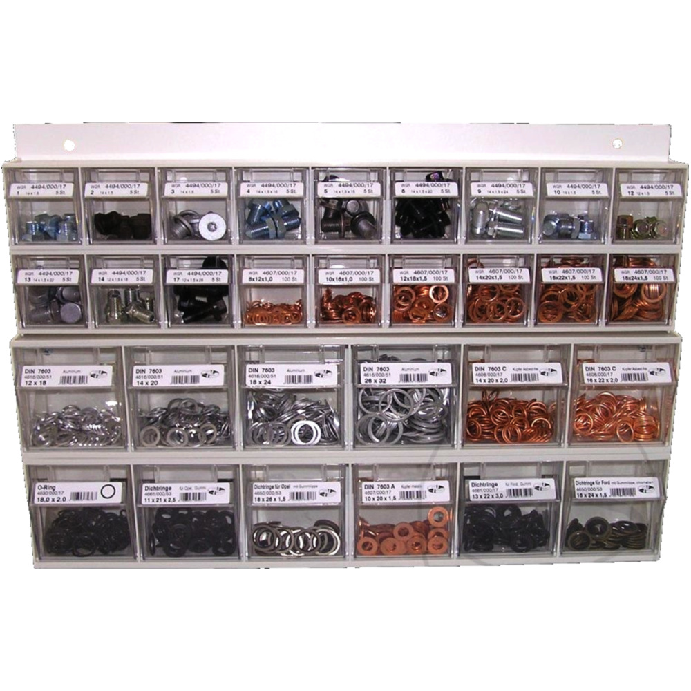 DRESSELHAUS Wandregal, Bestückt, 30-fach, Ölablaßschrauben und Dichtringe