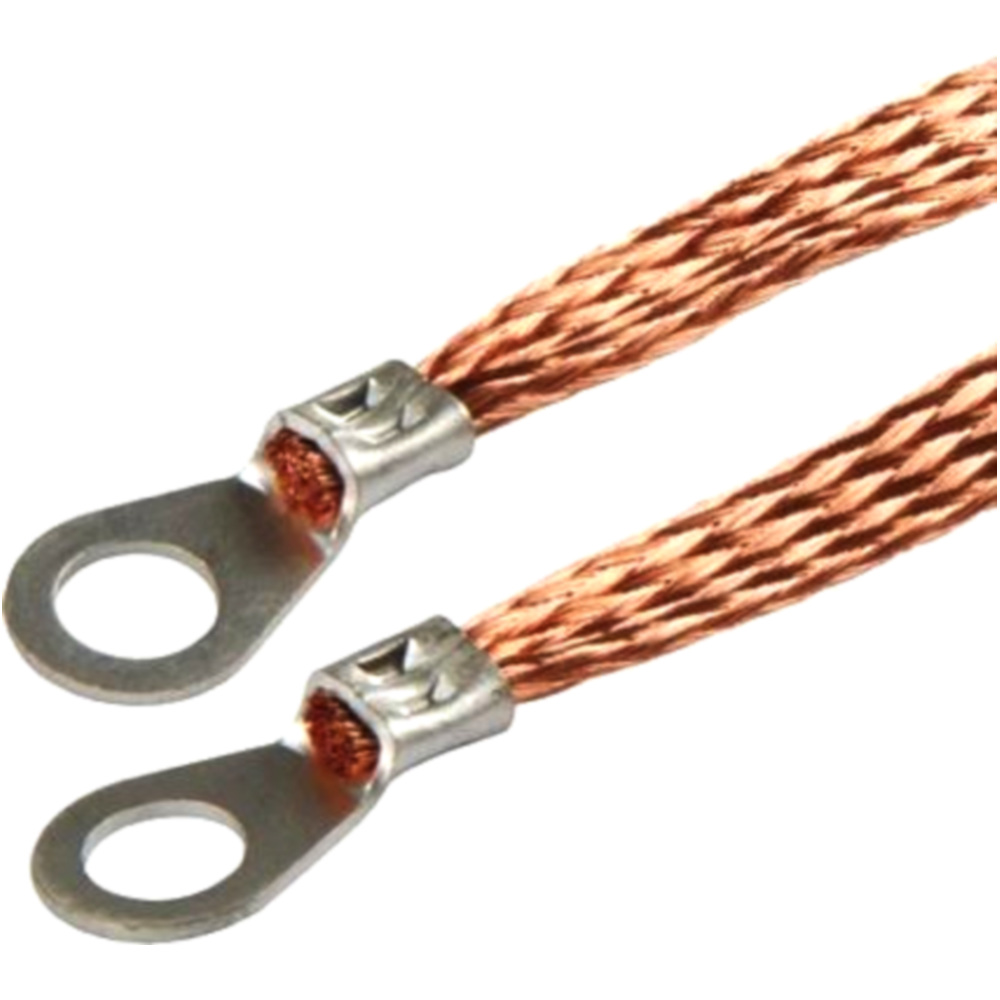 Mit beidseitig angepressten, unisolierten Ringzungen (Quetschverbinder in Ringform)