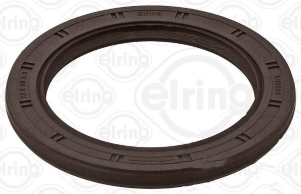 ELRING Wellendichtring, KurbelwelleStaubschutz: mit Staubschutzlippe Material: FPM (Fluor-Kautschuk) Drallart: Linksdrall Bauart Radialwellendichtring: ASW Höhe [mm]: 8 mmAußendurchmesser [mm]: 98 mmInnendurchmesser [mm]: 72 mm