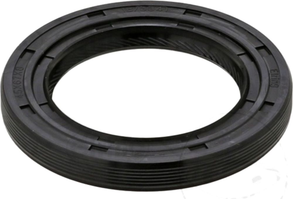 ELRING Dichtring, KurbelwelleStaubschutz: mit Staubschutzlippe Material: FPM (Fluor-Kautschuk) Drallart: Rechtsdrall Bauart Radialwellendichtring: ASW Höhe [mm]: 8 mmAußendurchmesser [mm]: 67 mmInnendurchmesser [mm]: 45 mm