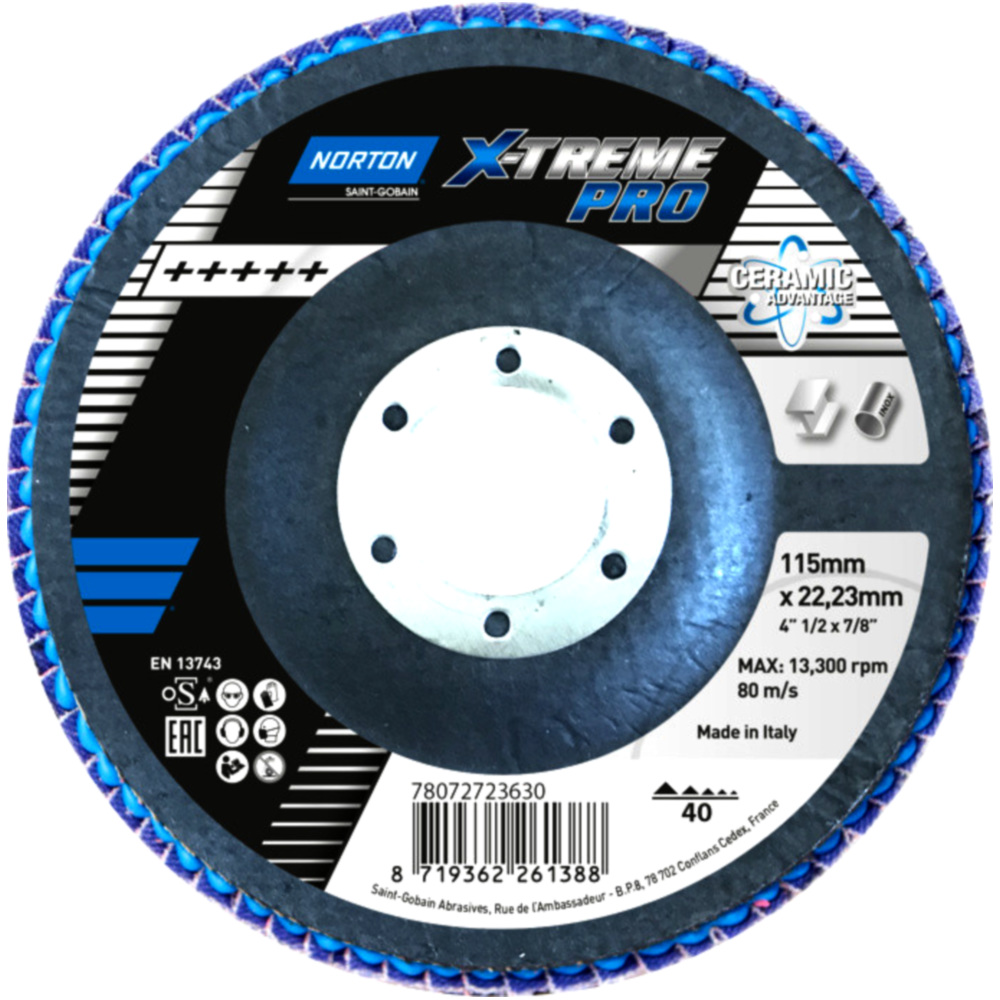 FAECHERSCHLEIFSCHEIBE 115X22 KONISCH QUANTUM R928 P40Norton Tellerfächerschleifscheiben sind für verschiedene Anwendungen konzipiert, darunter leichte Abtragungen, Mischungen und Endbearbeitungen, was bedeutet, dass sie zu kürzeren Bearbeitungszeiten und niedrigeren Kosten beitragen können.Tellerfächerschleifscheiben schleifen schnell und liefern ein besseres Finish als Fasern und haben den zusätzlichen Vorteil einer längeren Lebensdauer.