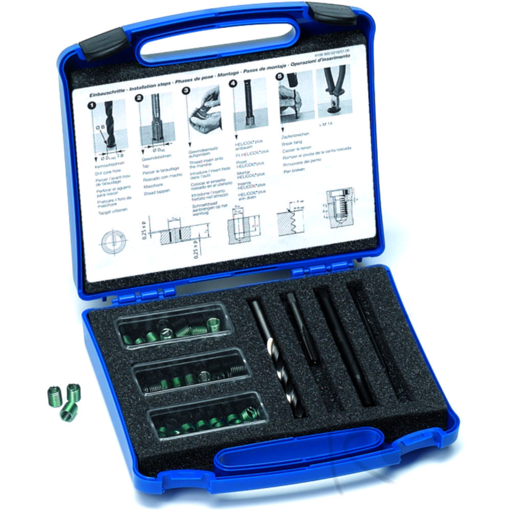 Inhalt: Gewindeeinsätze, Spiralbohrer, Handgewindebohrer aus HSS, Einbauspindel, Zapfenbrecher. (Produktbild kann abweichen)