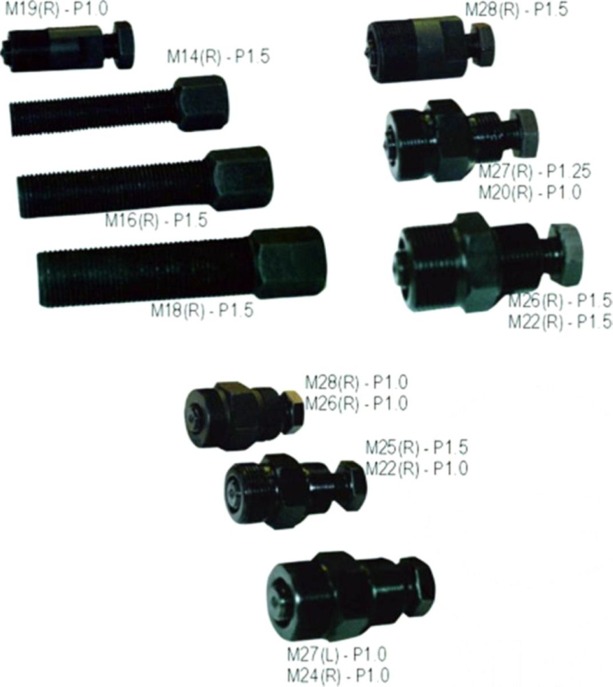 Gewinde | M14 x 1.5 rechts M16 x 1.5 rechts M18 x 1.5 rechts M22 x 1.5 rechts M24 x 1.0 rechts M25 x 1.5 rechts M26 x 1.5 rechts M27 x 1.0 links M27 x 1.25 rechts |