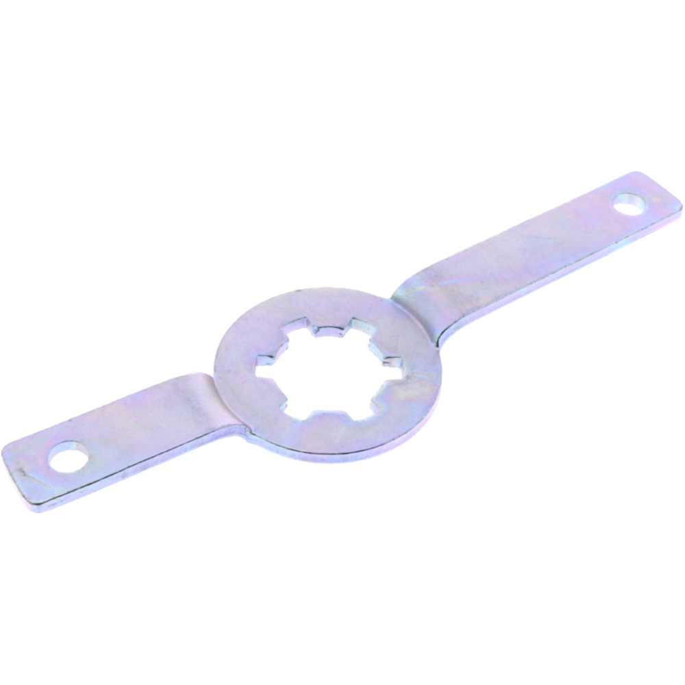 Dieses Werkzeug wird diagonal über der Kickstarterkrone festgesetzt indem es in 2 Gewinde der Variodeckelschrauben festgeschraubt wird.