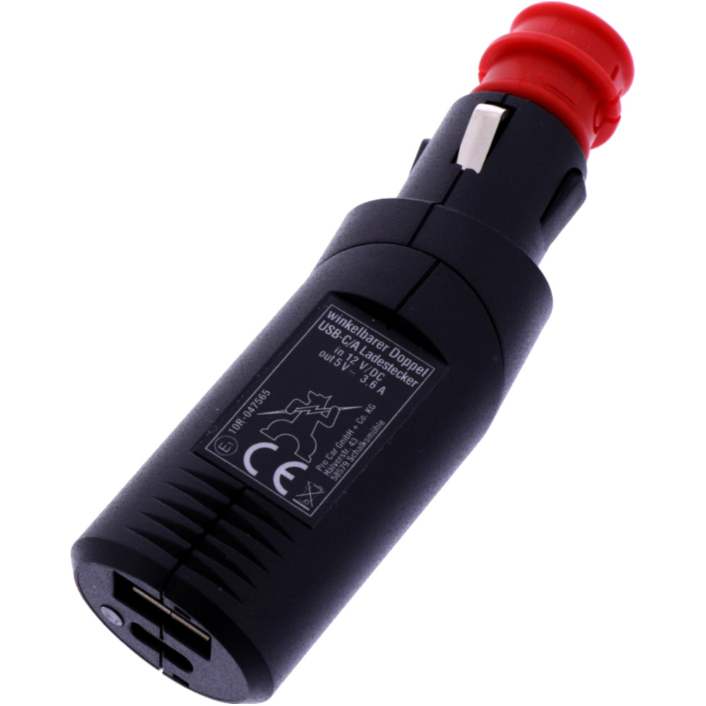 Der abwinkelbare Power USB-C-A Doppel-Ladestecker dient mit seinem starken Ladestrom von bis zu 3,6 A gesamt (vergleichbare Ladestecker haben meist nur 1A) zum schnellen Laden von mobilen Geräten mit Standard USB-A Stecker sowie USB-C Stecker (z.B. Mobiltelefone, Navigationsgeräte, Digitalkameras, MP3-Player, Tablets etc.) an einer Kfz-Normsteckdose/BMW-Bordsteckdose oder dem Zigarettenanzünder. Es können zwei Geräte gleichzeitig angesteckt werden. Der 2-fach abwinkelbare Stecker ermöglicht die einfache Anpassung an verschiedene Platzverhältnisse.