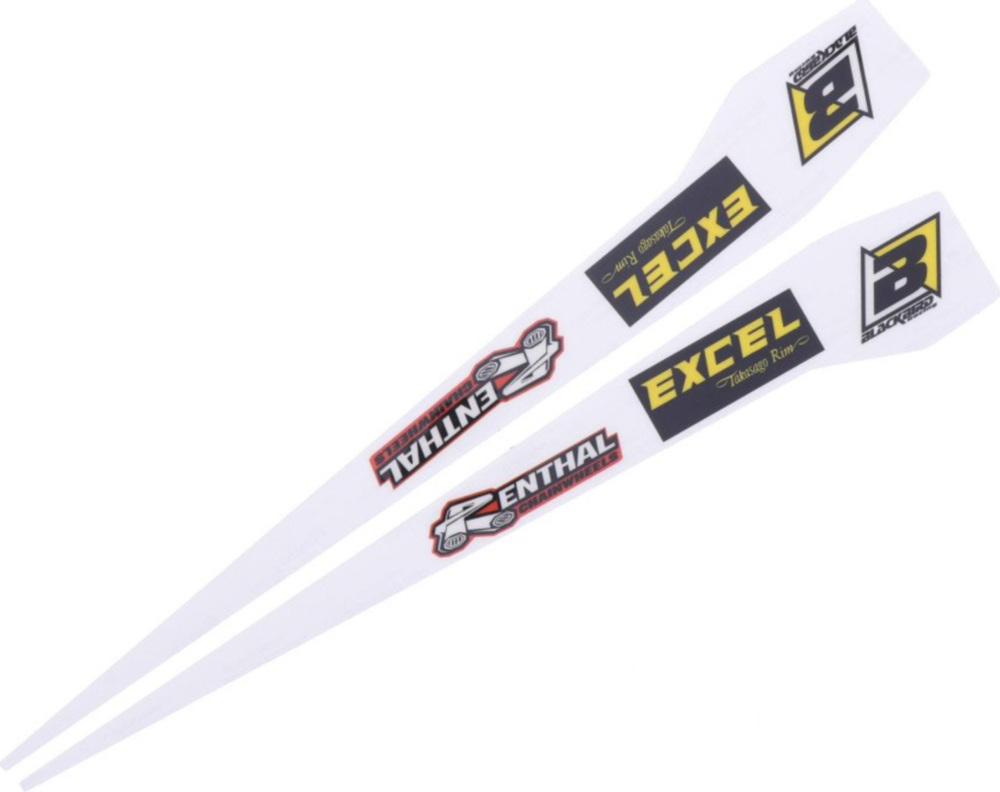 Zwei von der Rückseite bedruckte Schwingenaufkleber aus 0,5mm dickem Material. Die Aufkleber werden für das entsprechende Modell vorgeformt.