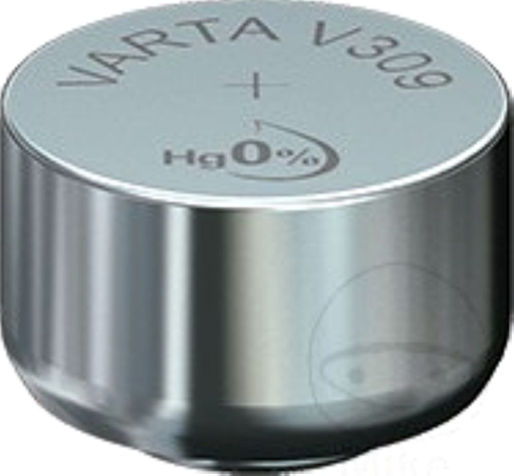 Technische Daten:Typ Nr.: V309 Bauform: SR48Elektrochemisches SystemPrimär SilberHöhe: 5.4 mmDurchmesser: 7.9 mmSpannung: 1.55 VGewicht: 1.0 g